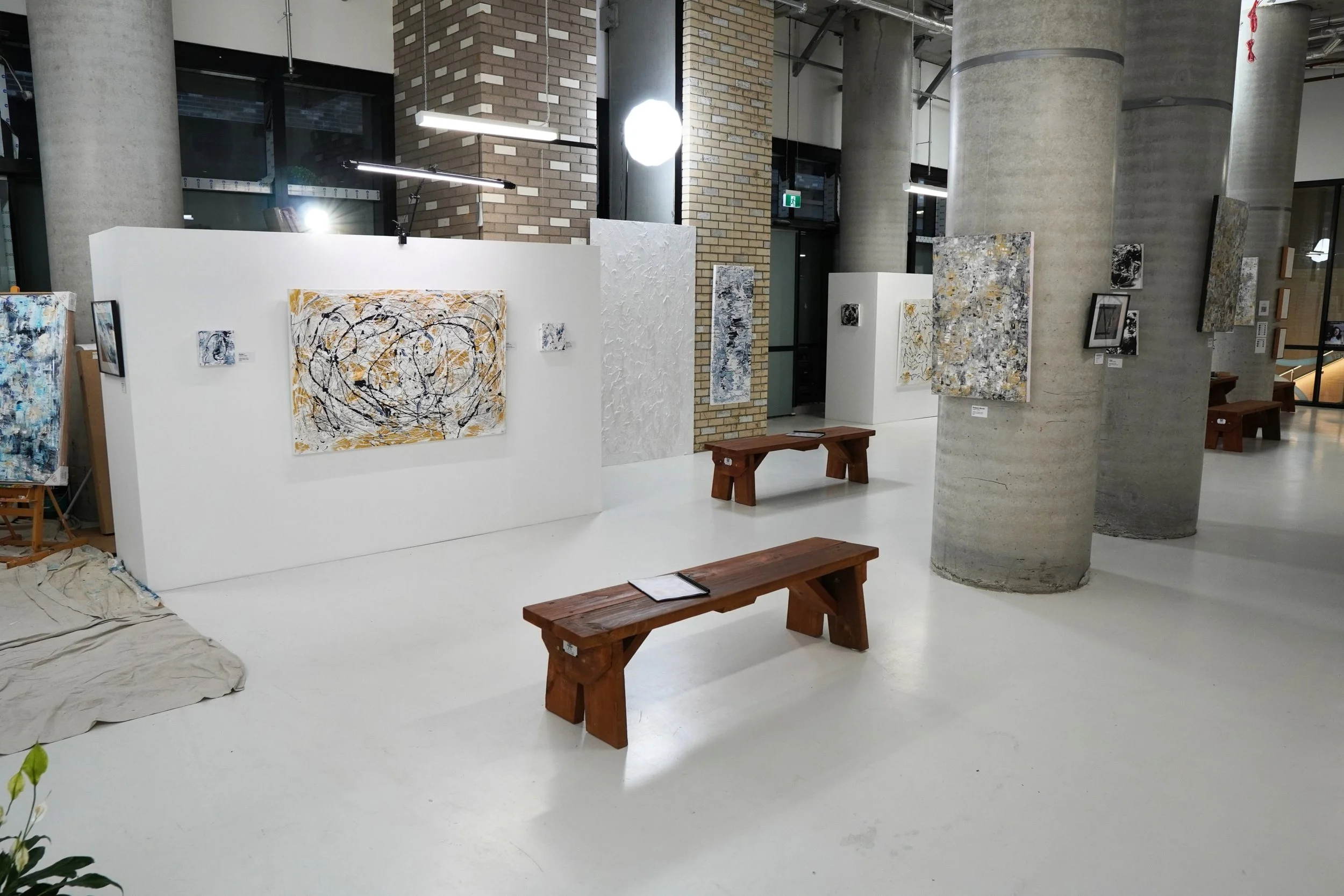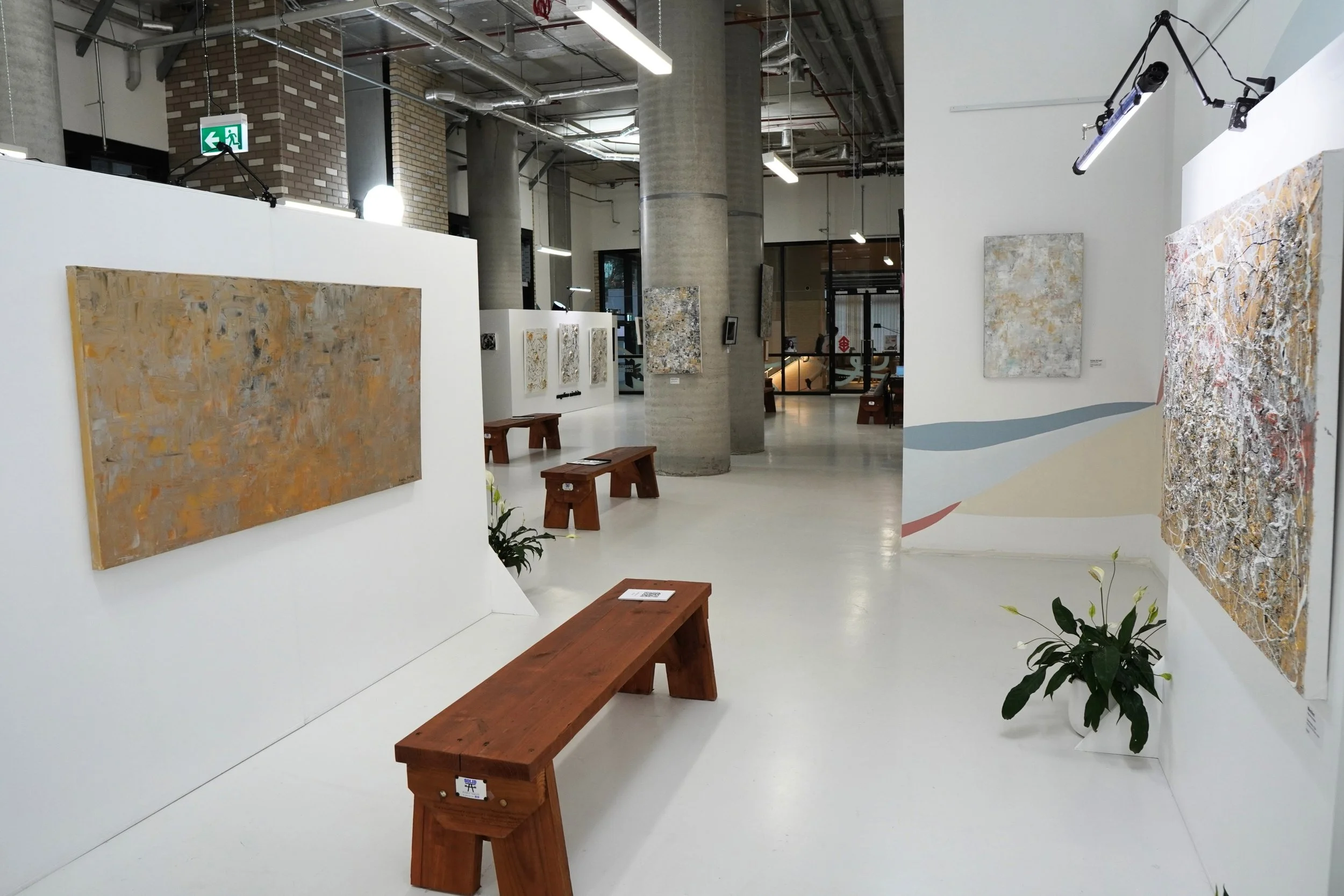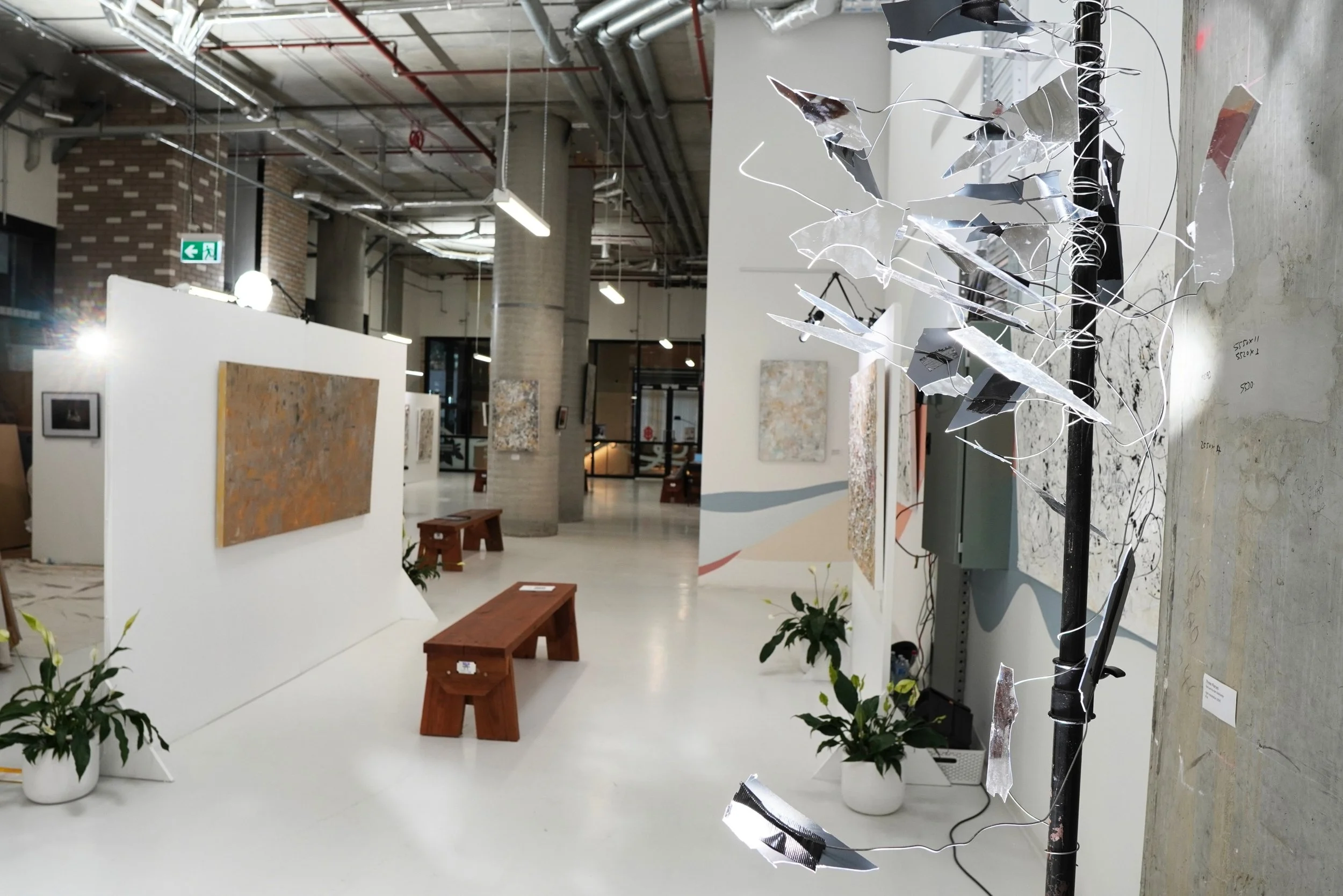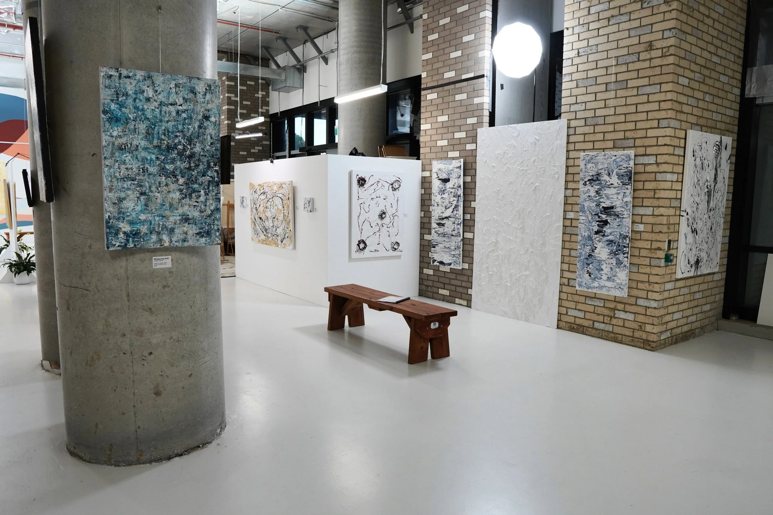 The work in this exhibition was created across Southbank and South Melbourne, where I live and hold my artist residency, on the unceded lands of the Wurundjeri Woi Wurrung and Bunurong peoples of the Eastern Kulin Nation. I pay deep respects to Elders past and present, and acknowledge the long, ongoing lineage of storytelling, spatial knowledge, texture, wisdom, and light held in Country for countless generations. As an artist working with space, surface, and transformation, I recognise this as part of a much older, deeper continuum of care and creative expression.
