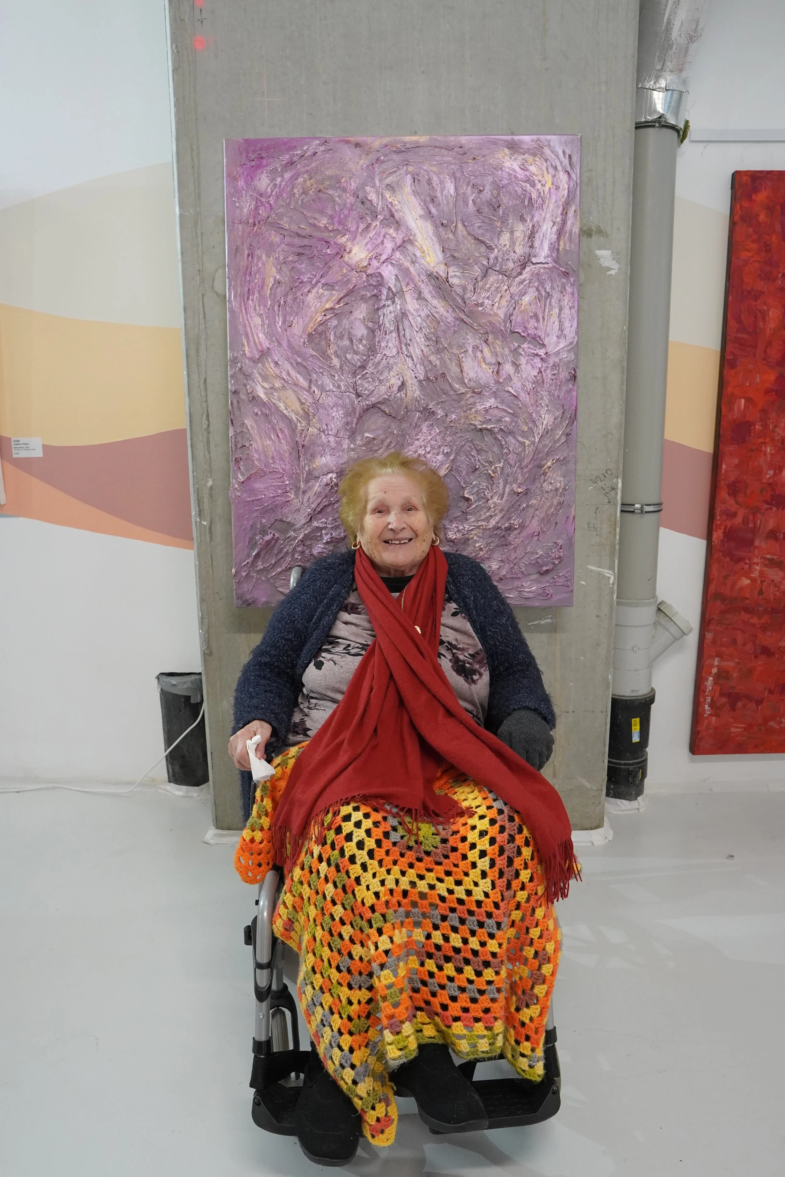 Maria Fonti, in front of the painting in she inspired, ‘My Grandmother 95’