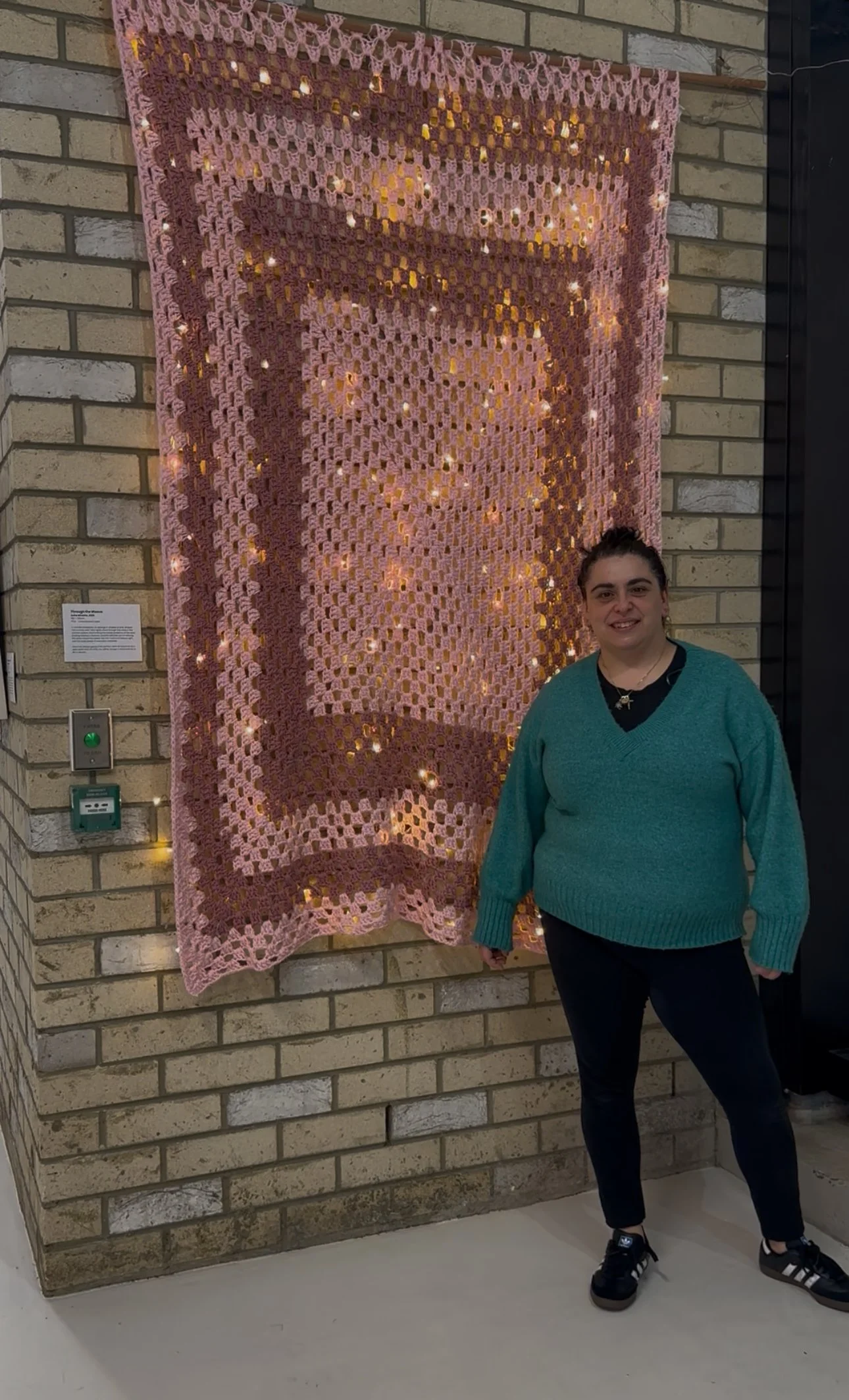 Anita Mirabito’s crochet installation, Through the Weave, 2025 transforms domestic craft into sculptural presence. Suspended in gradients of pink light and texture, the work becomes a tactile architecture of attention.